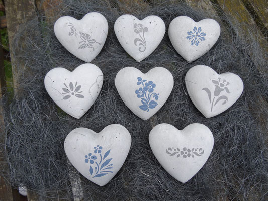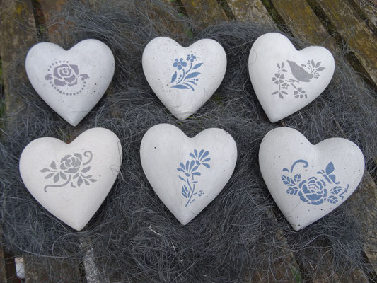 Betonherzen in den Größen 6 cm, 8 cm und 10 cm